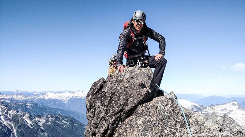 Our day will begin long before dawn. We’ll ascend snow and technical rock to gain the ridge. Exposed scrambling and short, steep sections of moderate rock characterize the final push to the summit. We’ll rappel and downclimb the route back to camp.