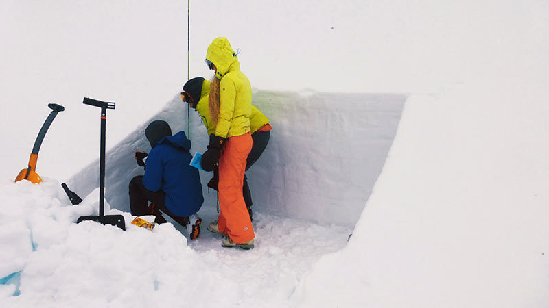 Plan on a full day in the field. In the morning, we’ll cover avalanche beacons and companion rescue. Students will have the opportunity to run several practice drills. In the afternoon, we’ll dig snow pits, and introduce standardized weather and snowpack observations.